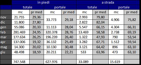 Anche le vendite a strada tramite il sito sono state ridotte, al livello del mese precedente: sono stati posti in vendita 1.200 mc, acquistati 500 circa (40%). Sono stato venduti 2 lotti di tronchi (70 euro/mc) e 2 di imballaggio (53 euro/mc).